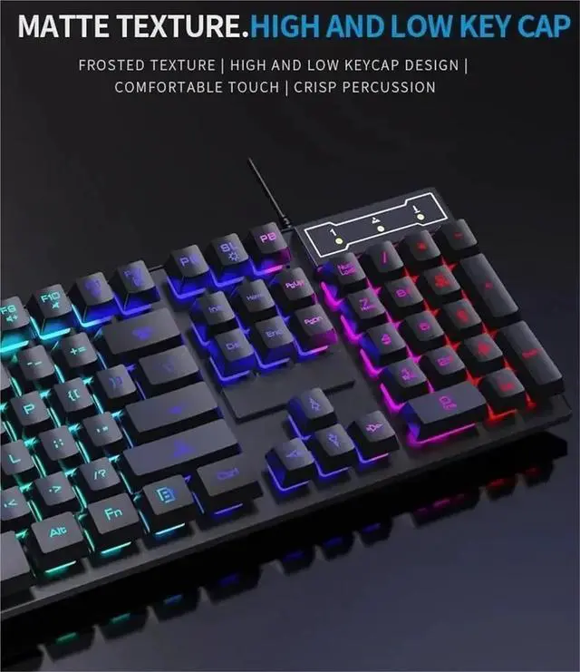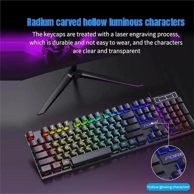 The keycaps are treated with a laser engraving process ,which is durable and not easy to wear , and the charactersare clear and transparentCool lighting effect display Cool rainbow backlight effect