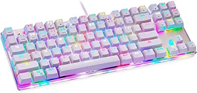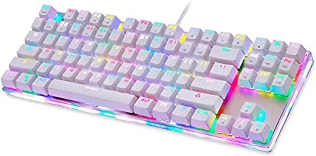 Equipped with Blue switches, this keyboard delivers an audible click and tactile feedback with each keypress. Perfect for those who enjoy the satisfying feeling of mechanical switches for both typing and gaming.