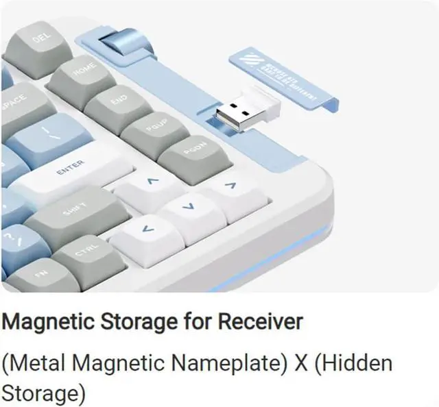 Stable Connectivity: Enjoy seamless transitions between wireless 2.4G-Hz, multi-device wireless, and wired USB connections. The keyboard includes a magnetic storage slot for the receiver, ensuring it's always within reach.