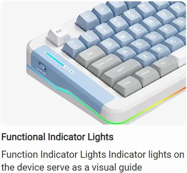 Immersive Aesthetics: Featuring a vibrant backlight and a surround light strip around the chassis, the Aoveew wireless keyboard provides a customizable and dynamic visual experience for typing and gaming.