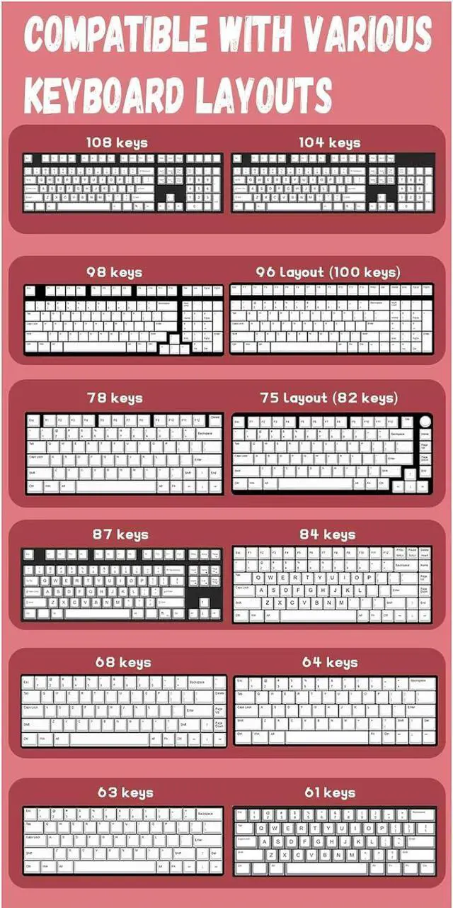 Compatibility: 61%, 64%, 68%, 84%, 87%, 104%, 108% layout mechanical keyboards