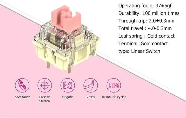 Quiet & Efficient: Linear switch design offers a glossy and quiet typing experience. The efficient noise reduction mechanism ensures a good use effect, making it ideal for silent mechanical keyboards.