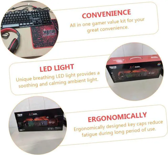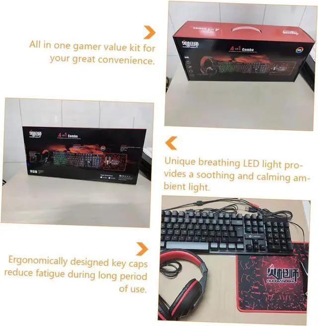 Keyboard mouse headset kit: , no driver needed, easy to use,mouse pad,4-in-1 gaming mouse