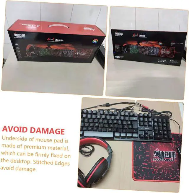 Gaming keyboard--underside of mouse pad is made of , which can be firmly fixed on the desktop, stitched edges avoid damage,4-in-1 gaming keyboard