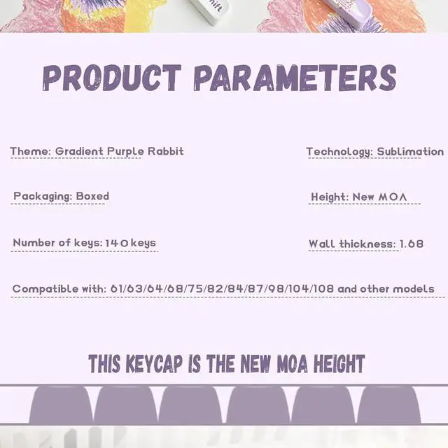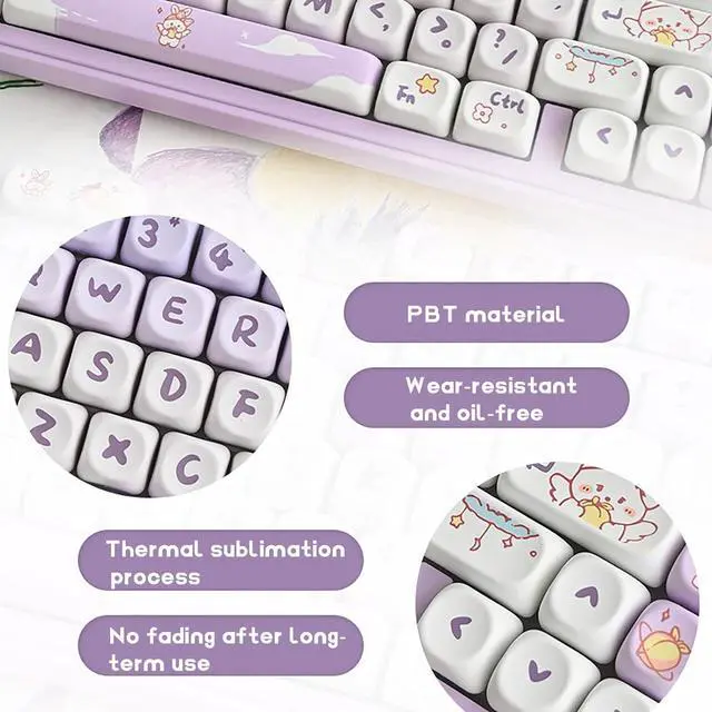 Adorable Rabbit Design: Our cute purple rabbit-themed keycaps add a fun and personal touch to your setup, making your keyboard a delightful accessory that brings a smile every time you type.