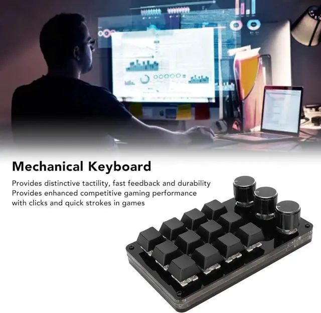 12 KEYS 3 KNOBS: Macro mechanical keyboard is designed with 12 keys and 3 knobs, which allows users to perform more complex operations and provide more of . Adjusting the volume, screen brightness or other related settings through the knobs is easy and enhances the experience of using the keyboard.