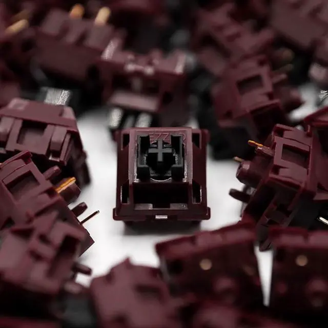 Gazzew U4Tx Plum brings a unique feel and sound. The switch produces a satisfying thocky sound on the downstroke and maintains a soft, silent upstroke. The stems in the Gazzew U4Tx Plum switches share the same CAD designs as the legendary Gazzew U4 but with a longer pole and addition of dustproof tops, and the bottom is the same base as the U4's only a different color.