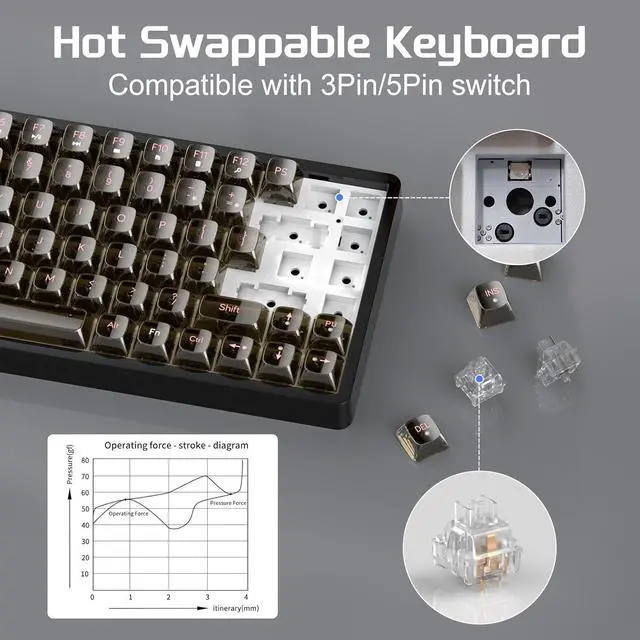 Hot-swappable full-key replacement design Our mechanical keyboard is compatible with most of the three-legged and five-legged shafts on the market, DIY your own keyboard, experience the fun of customization, simultaneous keystrokes without key conflict, fast trigger continuous skills, lock WIN key function to prevent accidental contact, for your gaming experience and high-speed typing escort