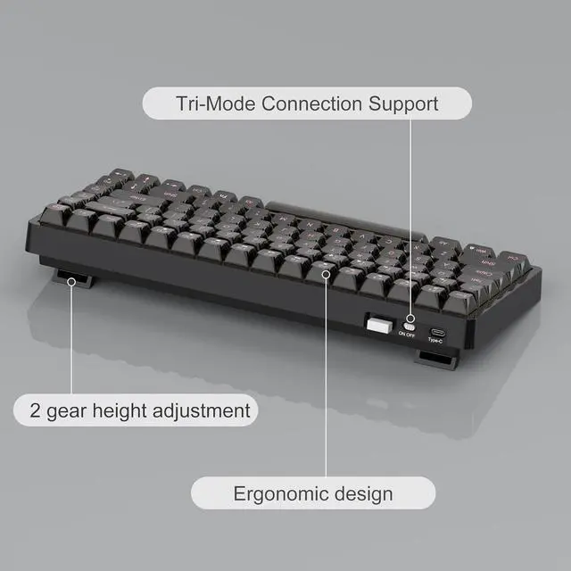 Tri-mode ConnectionSupport BT, 2.4G, wired mode connection, 2.4G wireless connection can realize extremely fast response, goodbye to delay. Long press Fn+1/2/3 button for 3 seconds to enter BT pairing mode, long press Fn+4 button for 3 seconds to enter 2.4G mode pairing password (receiver plugged into computer)