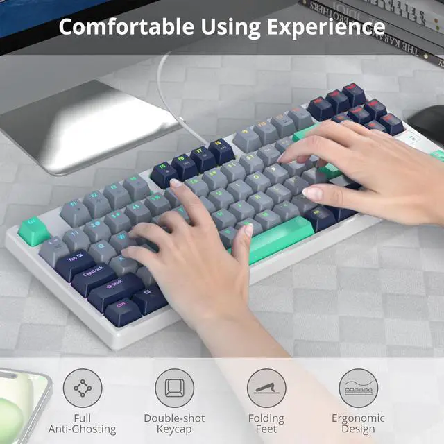 Experience the superior quality of PBT keycaps that offer a durable, textured surface for a consistent typing feel. Unlike ABS keycaps, PBT keycaps resist wear and shine, ensuring your keyboard looks and feels like new, even after extended use