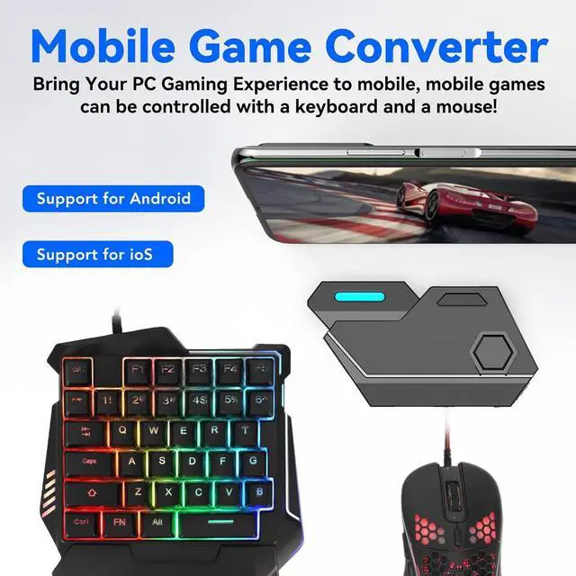 Complete Combo Pack: This comprehensive set includes a keyboard mouse converter, a gaming mouse, a one-hand G7 keyboard, and a mobile phone stand. Everything you need for an immersive mobile gaming experience, all in one convenient package.