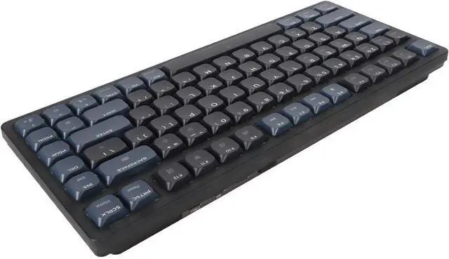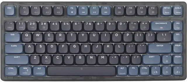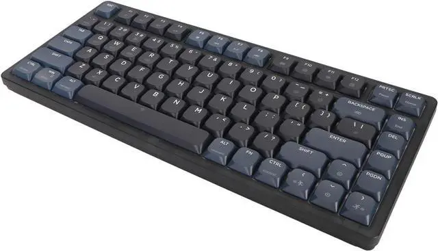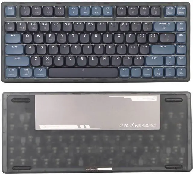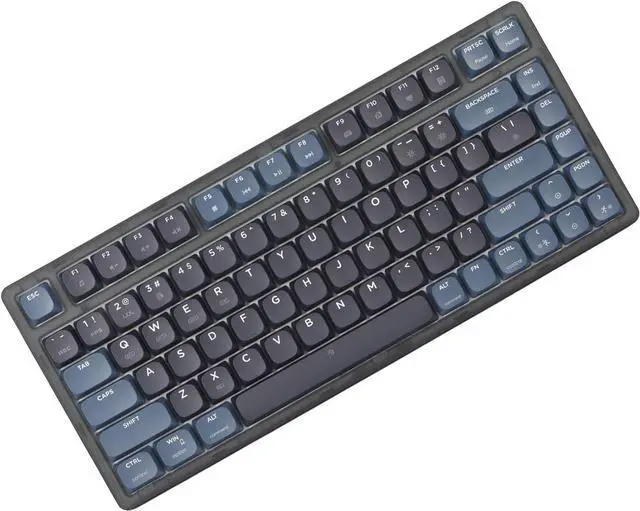 [TILTING ANGLE]: Black transparent shell with a unique tilting angle design, providing ergonomic typing position.