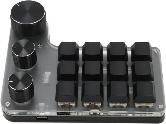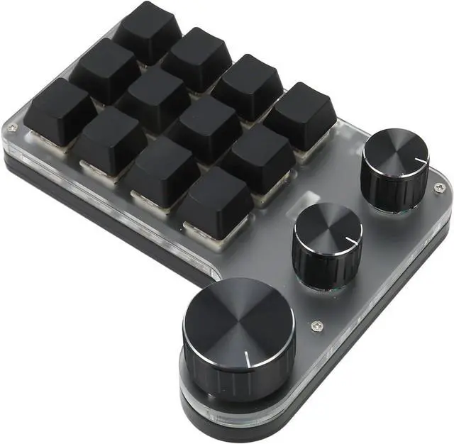 One Handed: 12 keys mechanical keyboard is mini with customization features, Type C to USB interface, plug and play with adjustment knobs for quick customization, minus the cumbersome links.