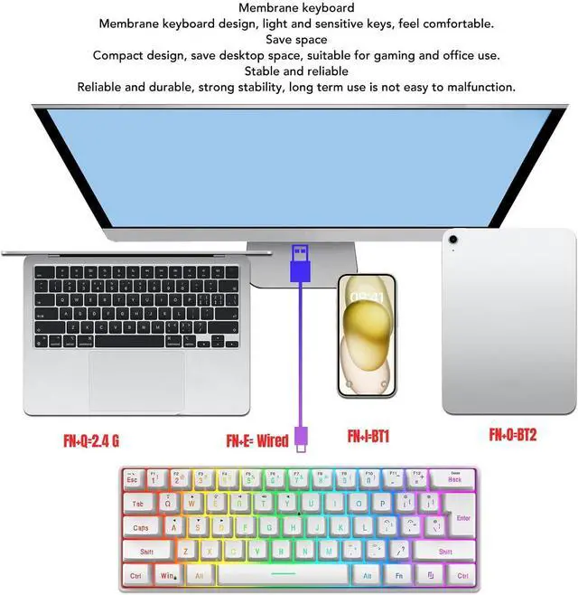 • 3 MODES: Say goodbye to connectivity limitations with the gaming keyboard that supports three versatile modes, 2.4G , , and wired connections. Experience uninterrupted gameplay and efficient device pairing for enhanced gaming performance.