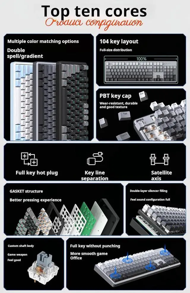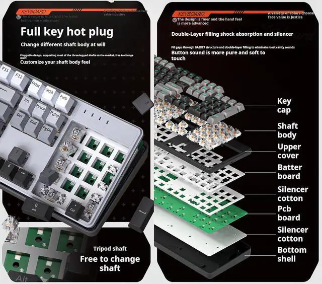 1.Gasket Soft Play construction: effectively reduces keyboard vibration and noise.
