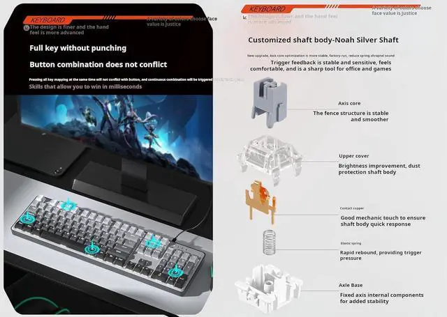 2. Silver shaft technology: Adopting silver shaft technology, it has faster response speed and higher durability.