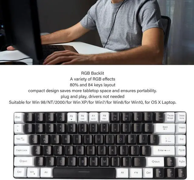 True Mechanical Keyboard Professional Mechanical Keys, compact gaming keyboard, giving you more space on your desk to move mouse or put other devices. Ergonomically designed, the keyboard is very comfortable to use during long typing sessions and gaming.