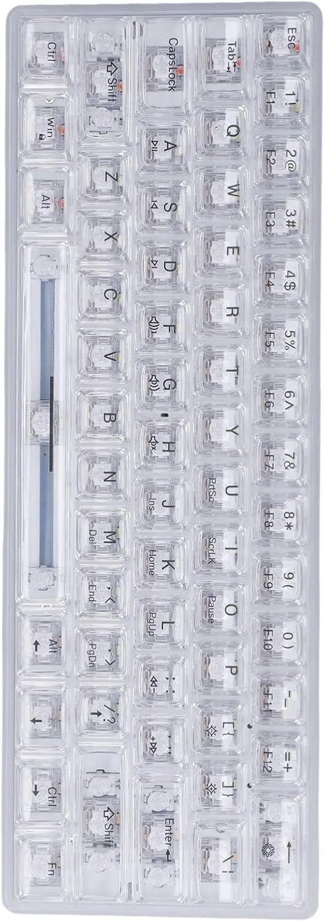 61 Key: The 61 keys layout saves space on your desk while still providing all the essential keys for typing and gaming, offering a comfortable and efficient user experience. The mechanical keyboard comes with 19 light effects, adding a touch of stylish and cooling to your work and game.