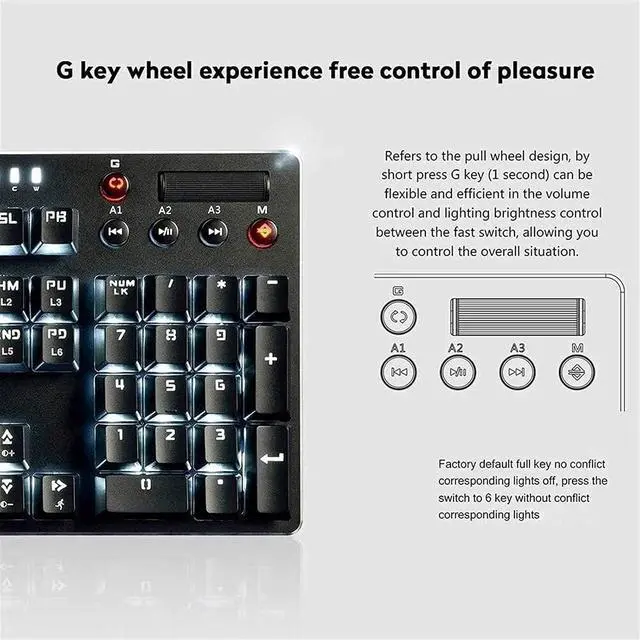 Mechanical Keyboard: 6 multimedia function keys + indicator light