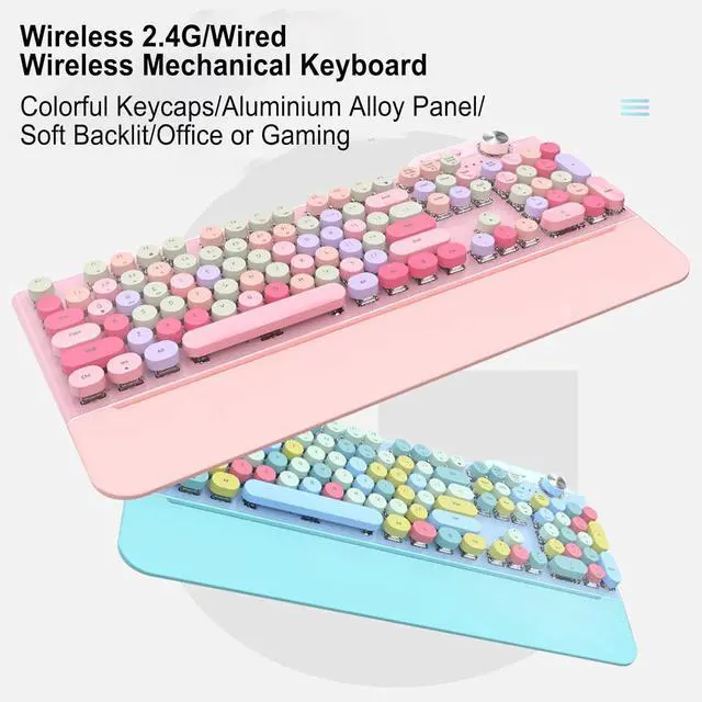 4. Retro Round Keycaps: This office keyboard adopts 107 cute round keycaps that resemble elegant typewriter. You can press the keys to adjust backlit brightness and modes.