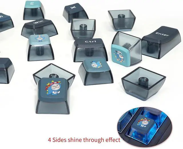 Colorful RGB Shine ThroughThe 4-Sides transparent keycaps can let the Blue light go through, you will have your own light shine-through keyboard, and the keyboard accept multiple RGB light shine modes switchover by specific keystroke combination.
