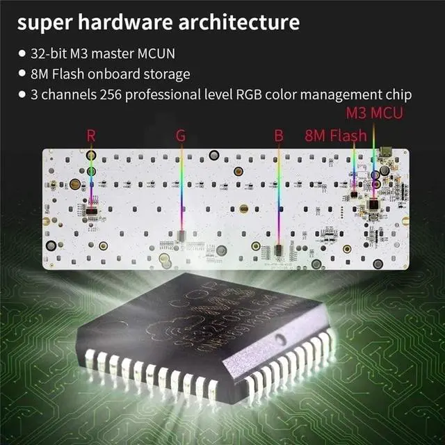 3-layer editable download function, FN1/FN2/FN3 user-defined. Musical rhythm light effect, light effect moves with the music rhythm.