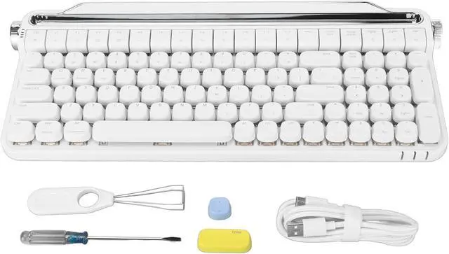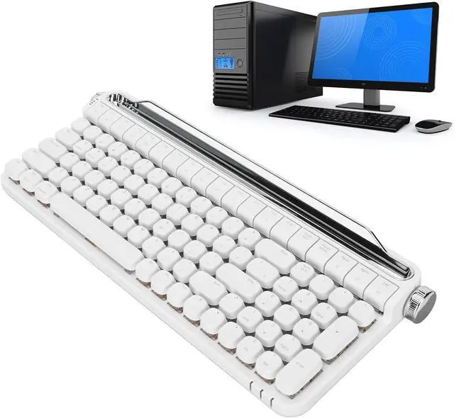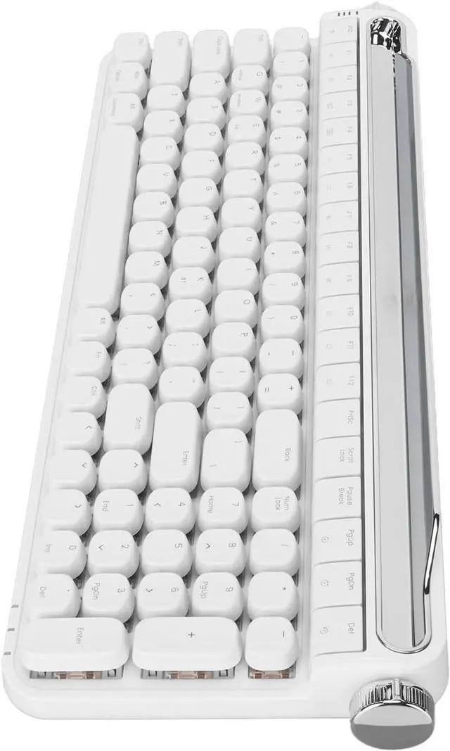System Support: Typewriter keyboard supports for Windows, for OS X, for Android, for IOS, etc. It supports various devices including PC, laptop, tablet, smartphone, and can be switched between devices by turning the left knob. Turn the right knob to adjust the volume.