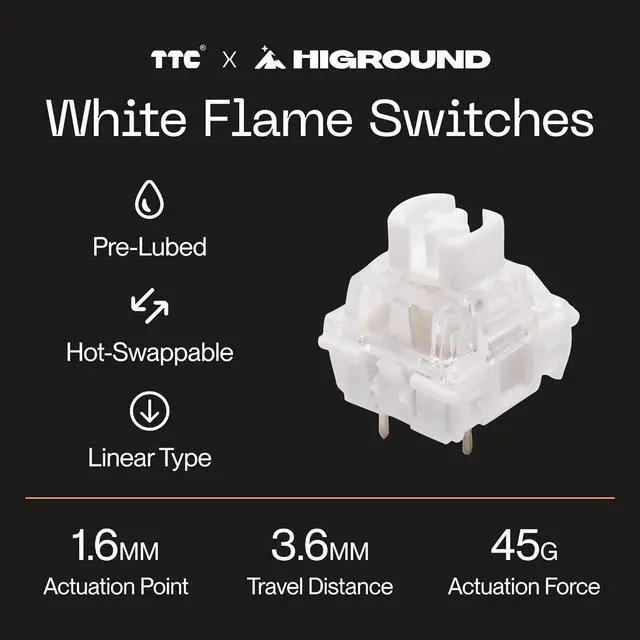 Seamless Typing, Collaborative Design - Co-designed switches by Higround and TTC for smooth, tactile feedback.