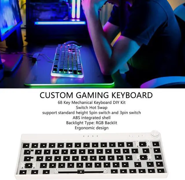 SWITCH HOT SWAP: This custom gaming keyboard features switch hot swap, and ABS panel ensures longer service life. Support standard height 5pin switch and 3pin switch.