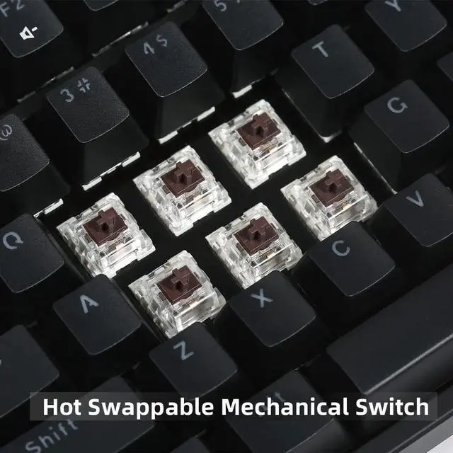 Hot-Swapable Switch- High-quality mechanical switch with hot swappable function supporting hot swap of 3-pin/5-pin switches is making sure that the feeling of keyboard can be customized