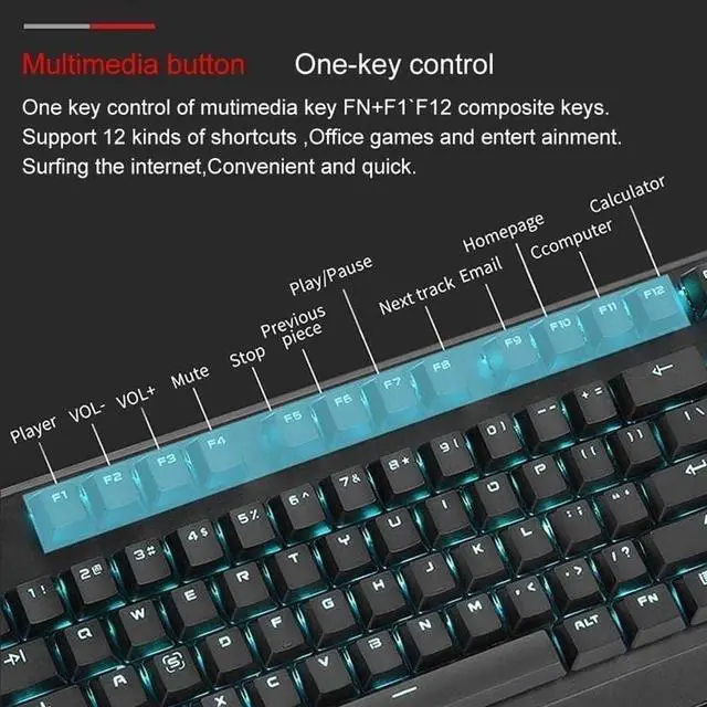 Advantage 1: Two-color injection keycap process,the button font is clear,bump clear, colorful, mechanical feel,long-term use is not easy to fade, easier to clean and waterproof.