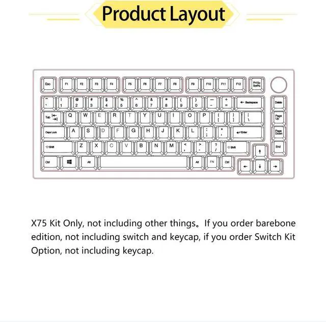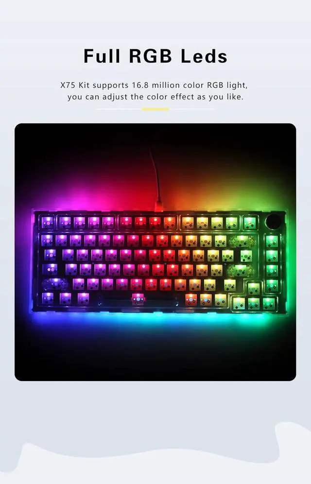 Pls pay attention: X75 Gasket Barebone Kit only, doesn't include keycaps or Switch.