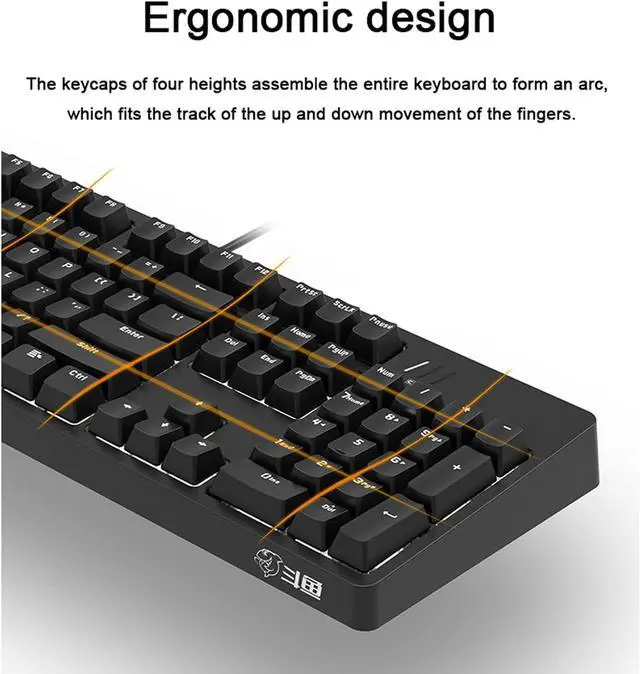 4. Ergonomic design: four heights of keycaps assemble the entire keyboard to form an arc, which fits the trajectory of the up and down movement of the fingers.