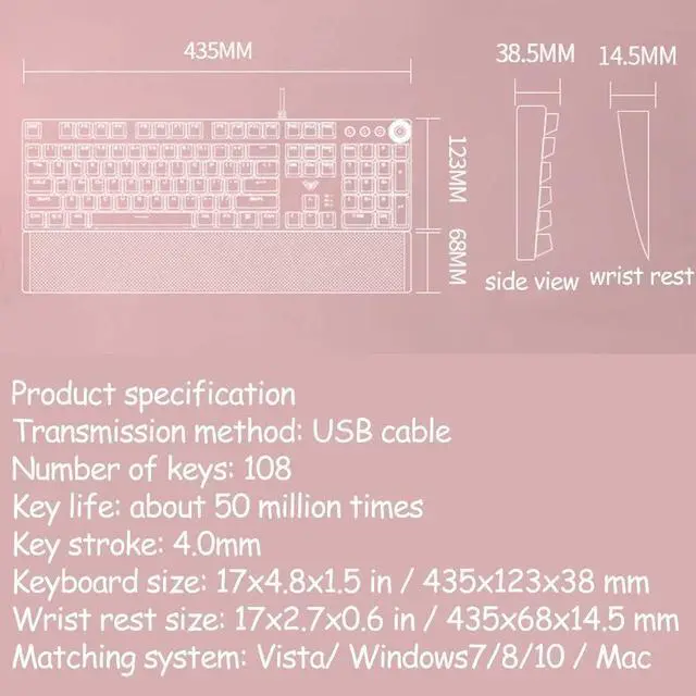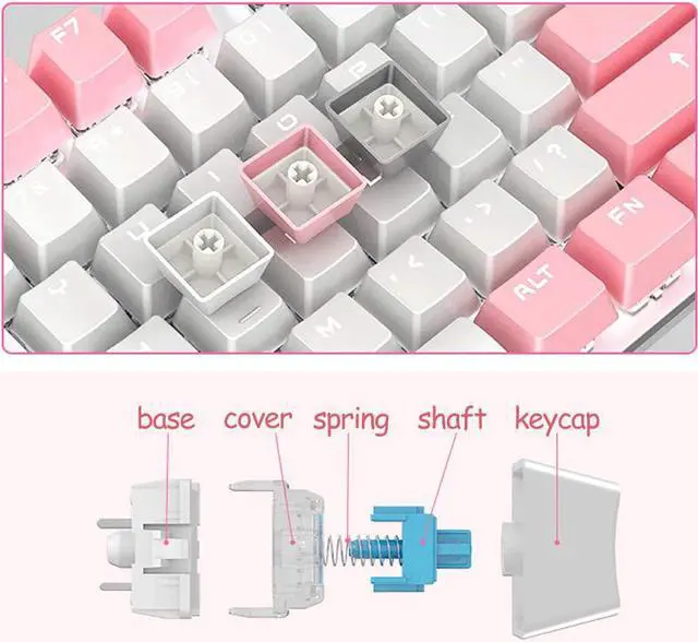 2.The material of the keycap is PBT plastic, which is durable and comfortable to touch. The two-color injection molding process has good light transmission and does not fade. Even in a dark environment, you can see the letters clearly. The arc design of the keycap is ergonomic and comfortable.