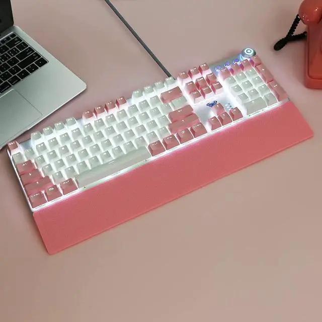 4.The panel of the keyboard is a thick aluminum alloy panel with a slightly matte feel, stylish, comfortable and durable. The keyboard is also equipped with a magnetic wrist rest, which can relax your wrists properly, and it is also very convenient to install and remove.