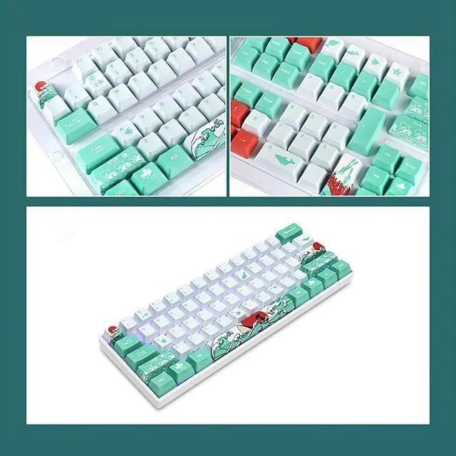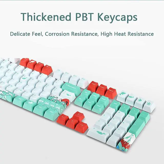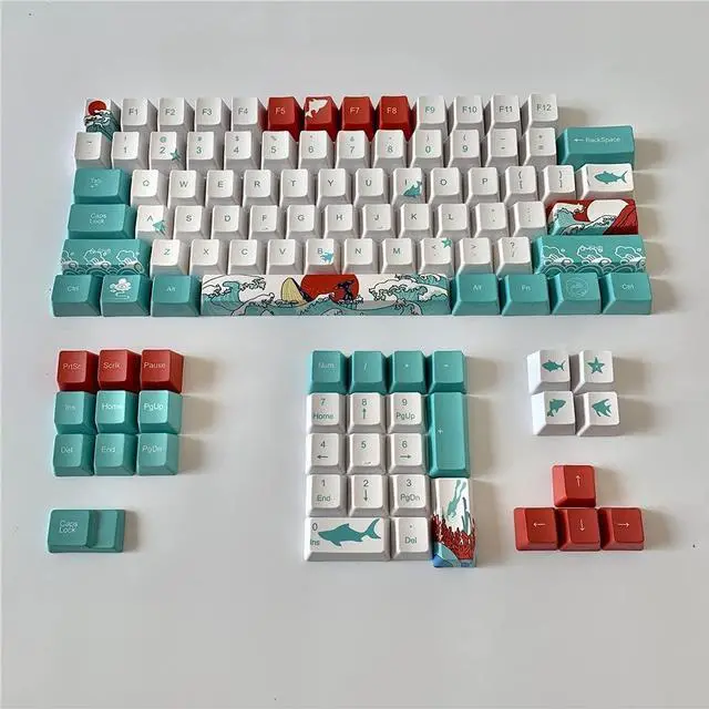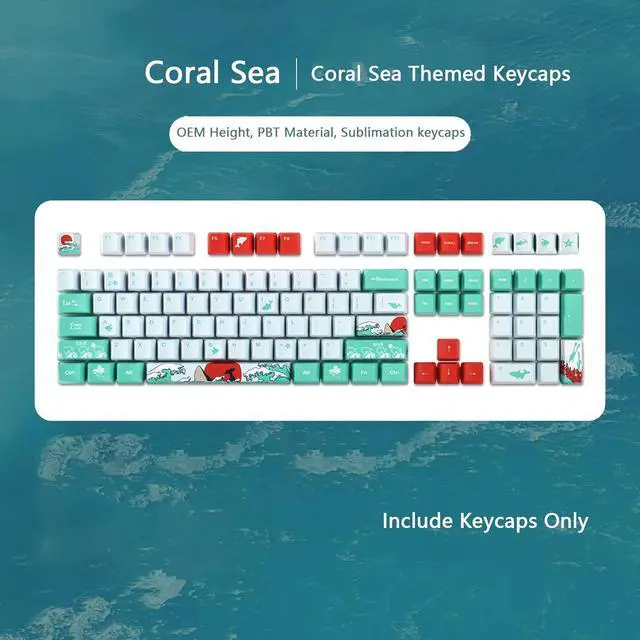 Japanese Style Coral Sea Design Blue White Red Keycaps OEM Sublimation PBT Keycaps Keycaps For Cherry Switch Mechanical Gaming Keyboard Use Spacebar is 6.25x Version Package include keycaps only