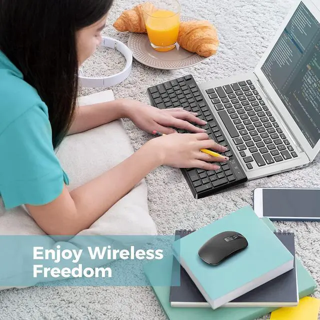 2.4G Wireless Plug and Play-- Simply connect portable keyboard and mouse with a USB receiver (INCLUDED in mouses battery compartment), for saving USB port of your computer. No delays or dropouts. Allows reliable wireless connection up to 10 meters(33 ft) without any driver.