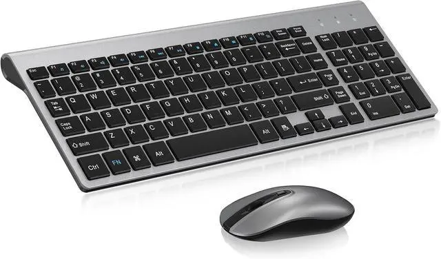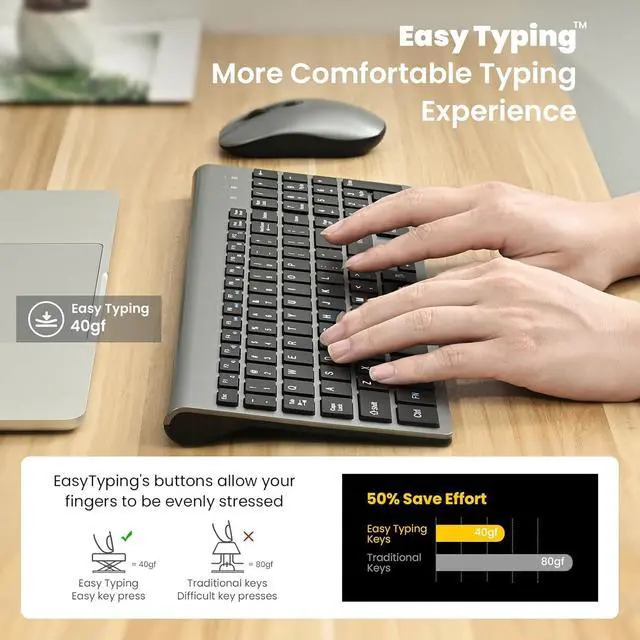 Less Noise & Profile Keys Typing The keyboard's noise reduced keys and the silent click of the quiet mice will allow you to do your job without missing a sound or disturbing your environment. The wireless keyboard mouse combo features auto sleeping mode, plus on/off switches to help conserve battery use, you can go for months without the hassle of changing the batteries (AA batteries are not included)