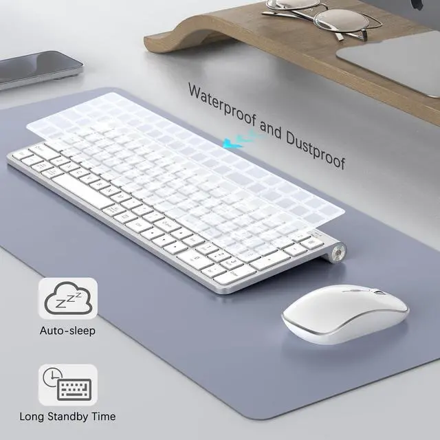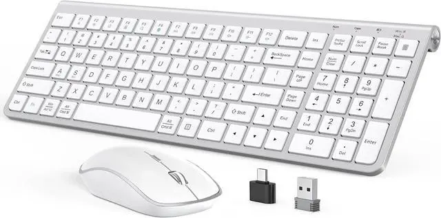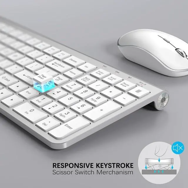 Sleek, Stylish, and Upgraded JOYACCESS slim, white wireless keyboard complements any workspace with its clean, modern design. Featuring a full-size layout and 12 function keys, this combo boosts productivity and enhances your desk's aesthetic with ease.