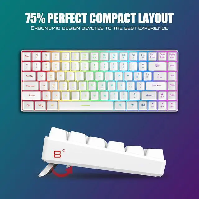 75% Compact Mini Keyboard and Ultra-light Honeycomb Shell MouseThe ultimate tenkeyless keyboard (84-key) that retains dedicated media keys and arrow keys makes it more practical than the 60% keyboard. The well-designed perforated honeycomb shell mouse is ergonomically designed and weighs only 65 (+-5) grams, making it more flexible and comfortable without fatigue.