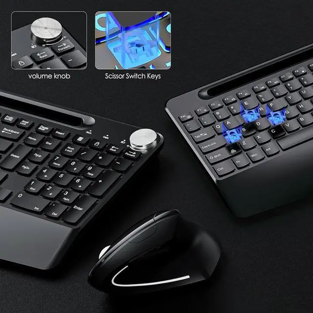 FULL-SIZE KEYBOARD WITH HOLDER:When you need to work on tasks on your computer and mobile device at the same time, there's no need to fumble around switching devices anymore. Simply place your phone or tablet on the keyboard and switch between devices seamlessly.