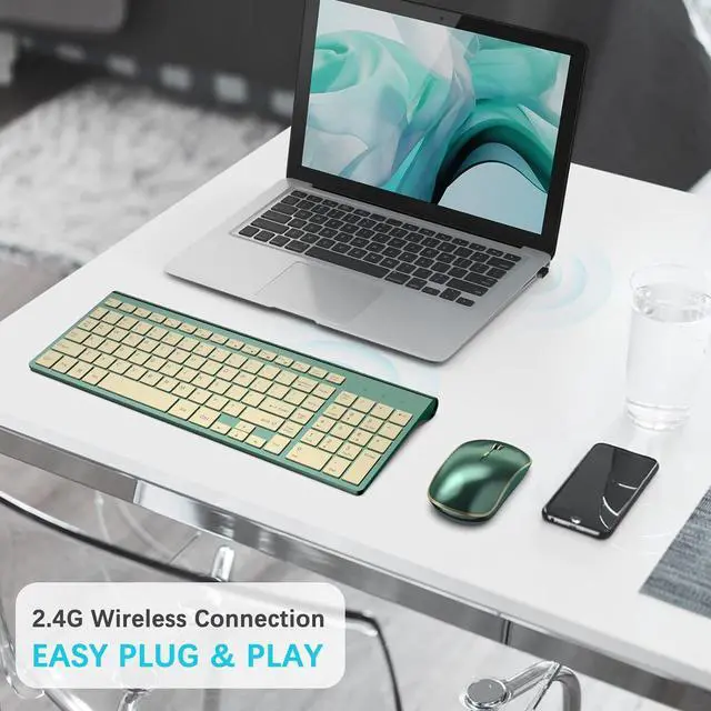 Wireless Keyboard and Mouse: Enjoy comfort with the JOYACCESS wireless keyboard and mouse combo. A new color scheme adds vibrancy to mundane offices. The contoured wireless mouse boasts a sweat-resistant, skin-friendly finish for prolonged comfort.