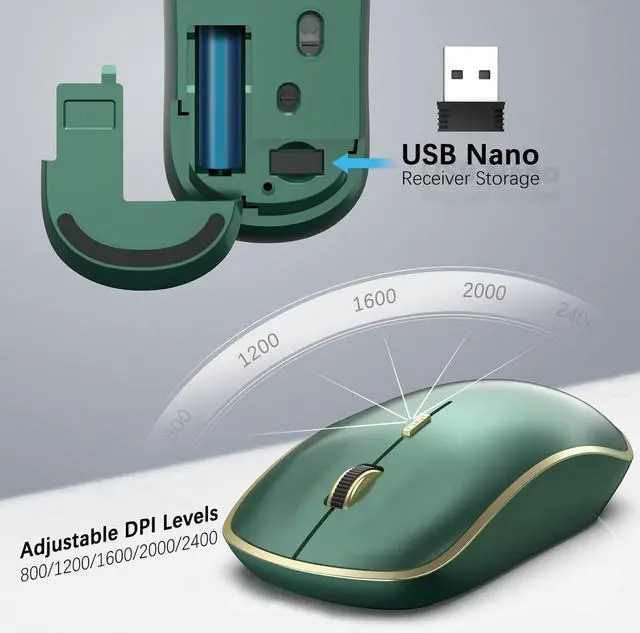 5 Adjustable DPI Levels --You can easily change the cursor sensitivity of this cordless mouse depending on your activities;usually 1600 DPI for office, DPI 2000-2400 for 4K resolution monitor or entertainment like gaming at home. 2 polling rate: 125Hz and 250Hz; adjusted by pressing the right key and the wheel simultaneously at 3s for change.