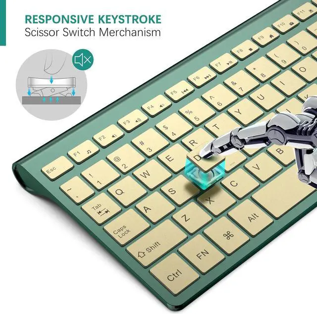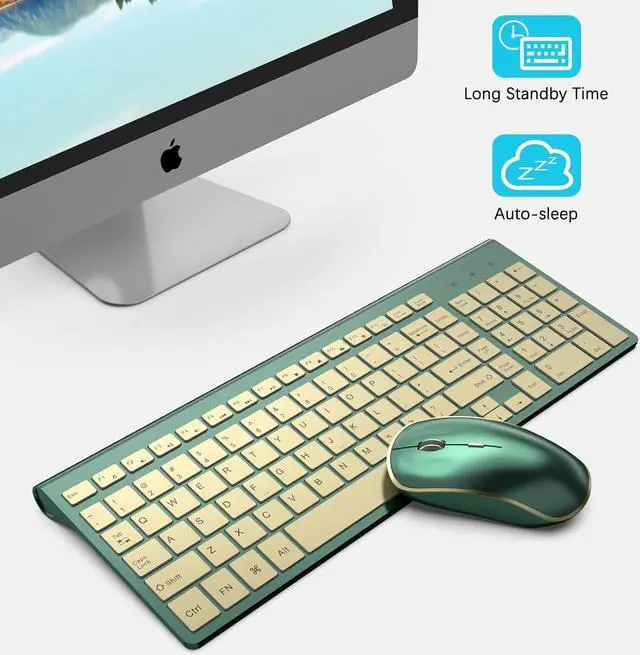 Stable 2.4G Wireless Connection --2.4GHz wireless signal delivers up to 10 meters connection. The optical mouse working currency is only 0.11mA and will automaticly enter power saving mode if inactivity in 20s; easily wake it up by moving.The compact keyboard also come into sleep in 10 minutes if no typing. *Battery not included in package.