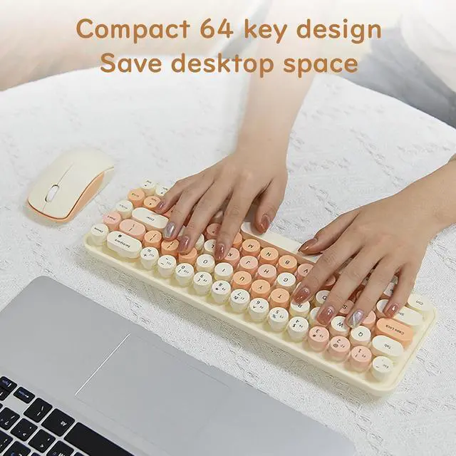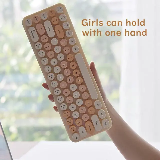 Nice appearance, small sizeThe compact 68-key design can be easily held by women with one hand, small and portable, and realizes various functions through the combination of Fn and Shift keys. The candy-colored round keycaps look great, it's a gifts for girls and children.