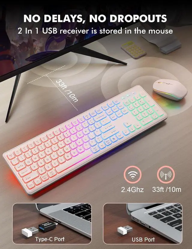 UNIVERSAL COMPATIBILITY - This backlit keyboard mouse combo works with your PC, Desktop, Laptop or Notebook. Compatible with Windows, Linux, Chrome and Mac. (Note: Multimedia keys may not be fully compatible with Mac OS systems).