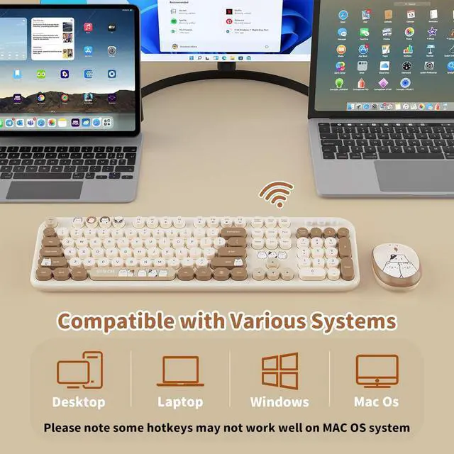 Convenient Wireless Connection: 2.4G wireless keyboard and mouse combo shares a single USB receiver for hassle-free plug-and-play setup, offering a stable 10M/33FT connection range. Ideal for laptops, desktops, and tablets, Keyboars set eliminates cable clutter while supporting Windows, Mac, and Linux systems.