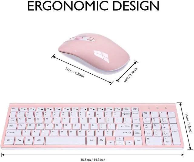 Slim and Portable Wireless Keyboard : Scissor-switch wireless keyboard and mouse combo are thin and lightweight, making them highly portable and suitable for on-the-go use with laptops and tablets like iPads. it has a tilt angle for the great typing position.Sweat-resistant, skin-friendly finish wireless mouse in contoured shape would provide hours of work comfortably