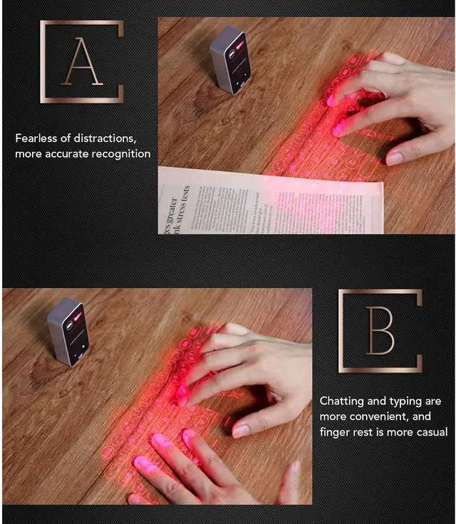 Quick and Simple Setup: Setting up is extremely easy and takes just a few seconds. Simply connect the virtual keyboard projector to your device, and press the power key to begin projecting a holographic keyboard and mouse.