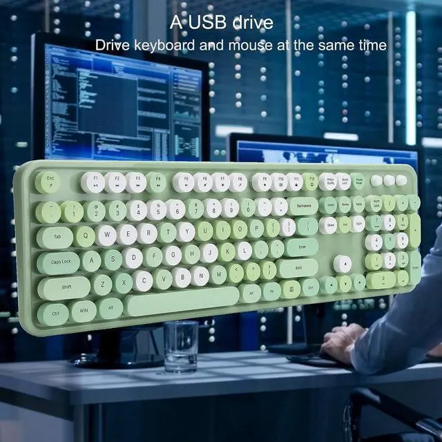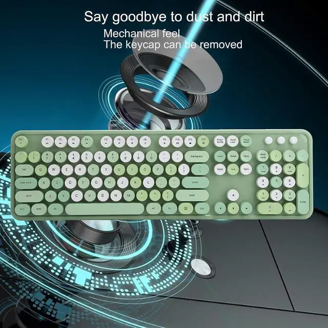 104 KEYS104 keys, numeric keypad area needed for office, and has a new mechanical feel, improve office efficiency. Improved keyboard, retro typewriter style, high key design brings life like mechanical feeling, light and quiet sound.